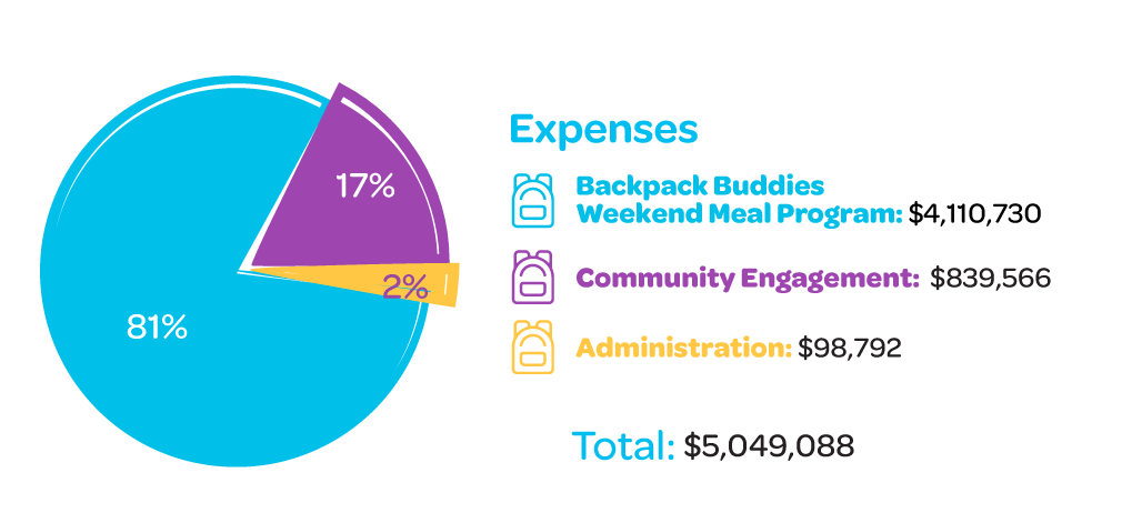 Children in the Backpack Buddies program live in food-insecure families – they do not have enough food to eat and struggle with the devastating and lifelong impacts of hunger and nutritional deprivation. When Backpack Buddies steps in, we offer our promise that we will be there for them, providing a source of food every weekend that they can count on as long as they need us. Keeping this promise means establishing financial stability in our organization to weather financial fluctuations that could otherwise threaten our ability to support children counting on us.